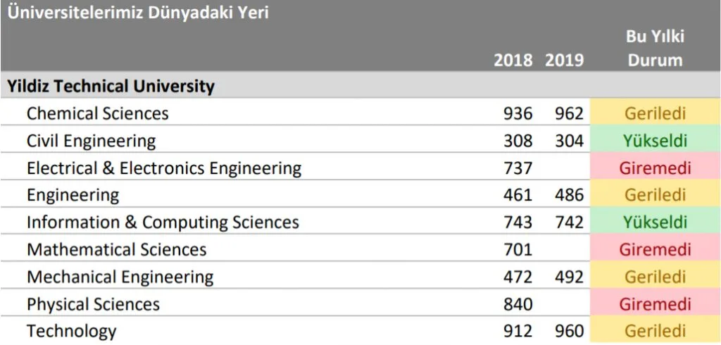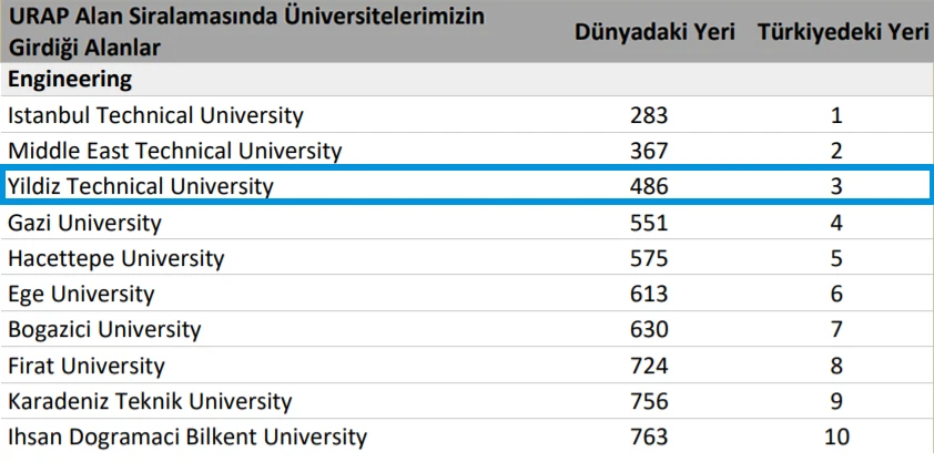 YTÜ MÜHENDİSLİK ALANINDA TÜRKİYE’DE ÜÇÜNCÜ SIRADA!