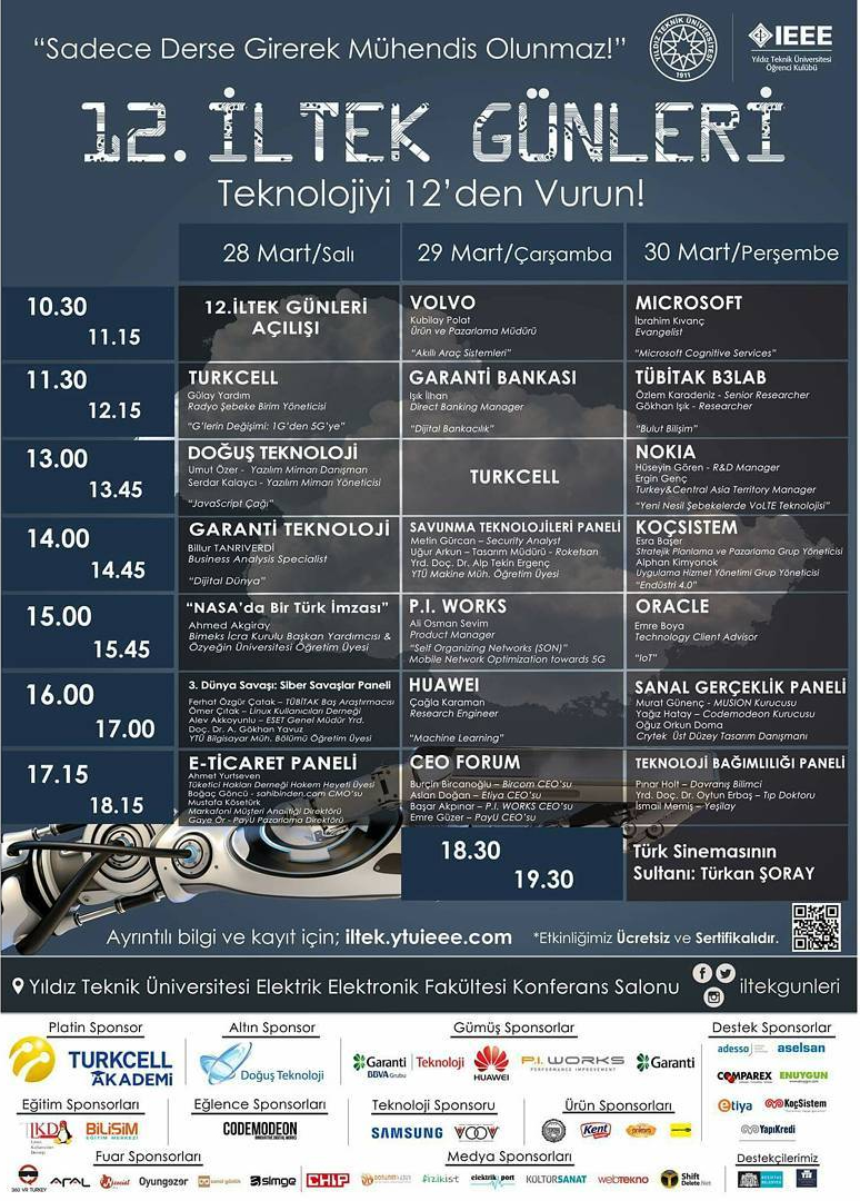 Sizleri de 28-29-30 Mart 2017 tarihinde Yıldız Teknik Üniversitesi Davutpaşa Kampüsü Elektrik Elektronik Fakültesi Konferans Salonu’na bu teknoloji şöleninin bir parçası olmaya davet ediyoruz.