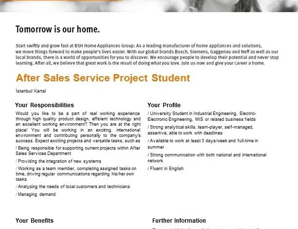 Başvuru Yap: https://www.kariyer.net/is-ilani/bsh-ev-aletleri-san-ve-tic-a-s-after-sales-service-project-student-2926636