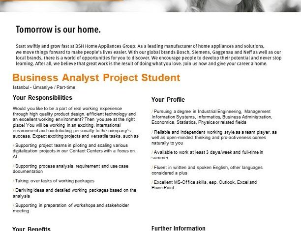 Kaynak ve Daha Fazla İlan: https://www.universitestaj.com/business-analyst-project-student-bsh-ev-aletleri-san-ve-tic-a-s-istanbulasyaumraniye/