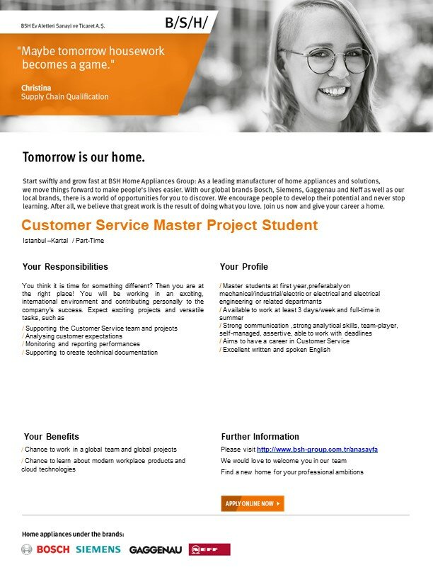 Başvuru Yap: https://www.kariyer.net/is-ilani/bsh-ev-aletleri-san-ve-tic-a-s-customer-service-master-project-student-2493545