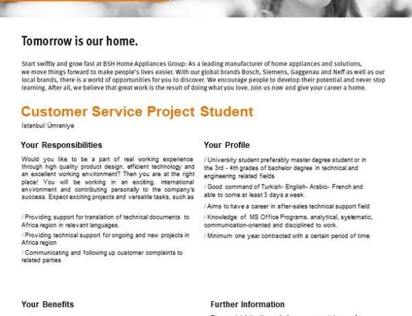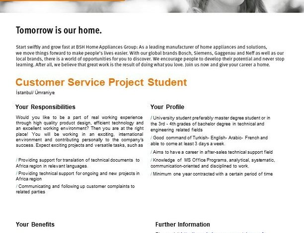 Kaynak ve Daha Fazla İlan: https://www.universitestaj.com/customer-service-project-student-bsh-ev-aletleri-san-ve-tic-a-s-istanbulasyaumraniye/