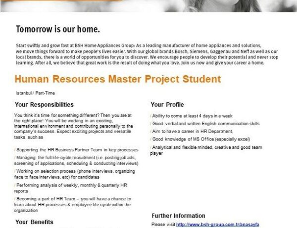Kaynak ve Daha Fazla İlan: https://www.universitestaj.com/human-resources-master-project-student-bsh-ev-aletleri-san-ve-tic-a-s-istanbulasyaumraniye/