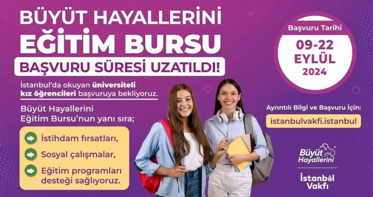 İBB İstanbul Vakfı çatısı altında, Dr. Dilek Kaya İmamoğlu öncülüğünde yürütülen Büyüt Hayallerini projesinin sağladığı burs desteğine başvuru süresi 22 Eylül’e kadar uzatıldı.