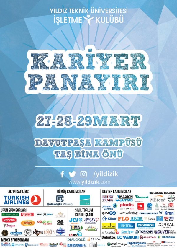 27-28-29 Mart tarihlerinde Yıldız Teknik Üniversitesi’nin en büyük kariyer organizasyonu olan “Kariyer Panayırı”na davetlisiniz!