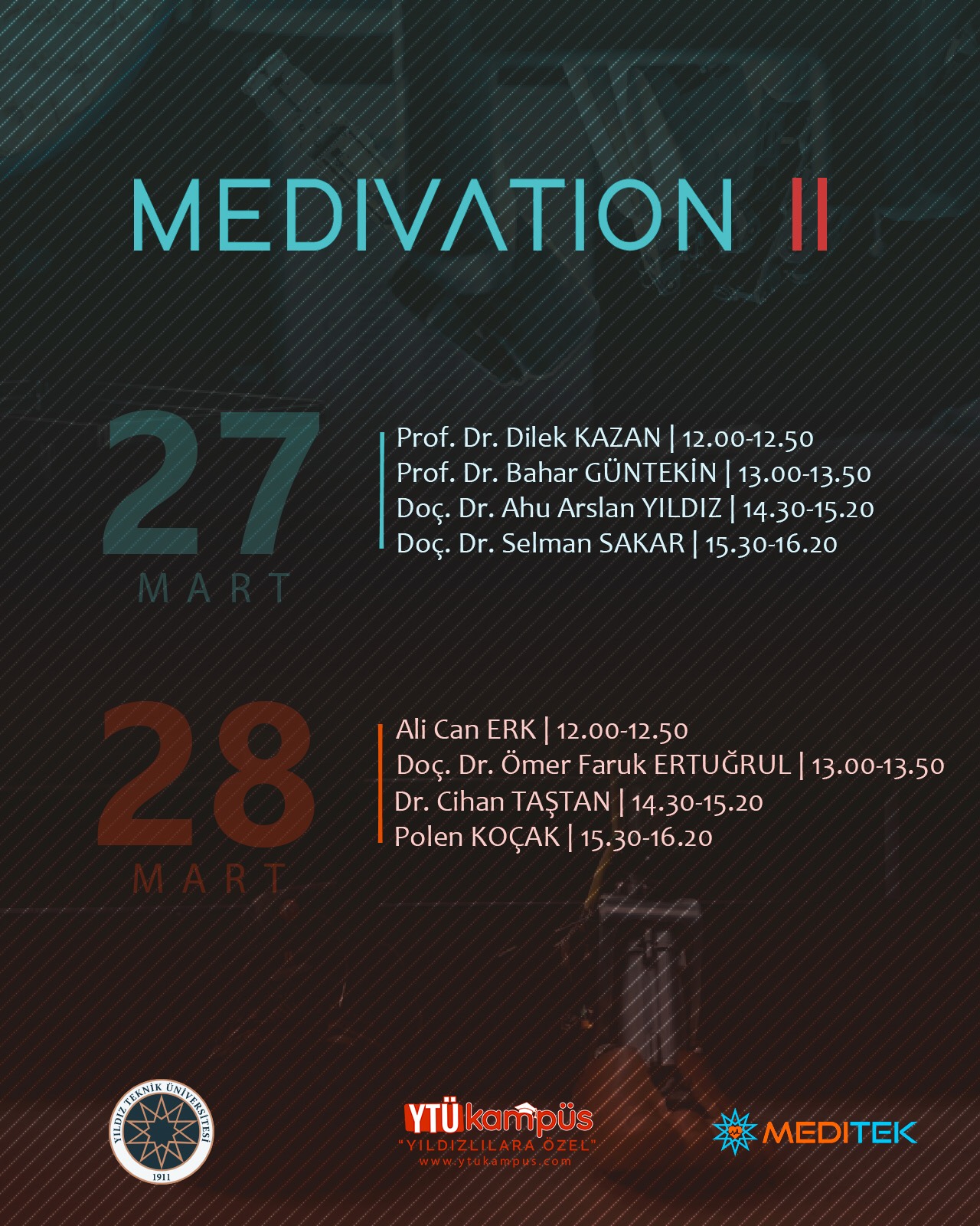 Yıldız Teknik Üniversitesi Medikal Teknolojiler Kulübü olarak ikincisini düzenlediğimiz MEDIVATION II zirvemizi 27-28 Mart’ta gerçekleştiriyoruz!