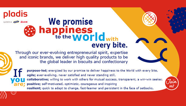 pladis aims to be the fastest growing biscuit and confectionary company in the world. We are a borderless and agile business, a global company growing into new markets from market leading positions in the UK and Turkey. Our promise to ‘bring happiness to the world with every bite’ is brought to life every day by our global family of 26,000 employees.
