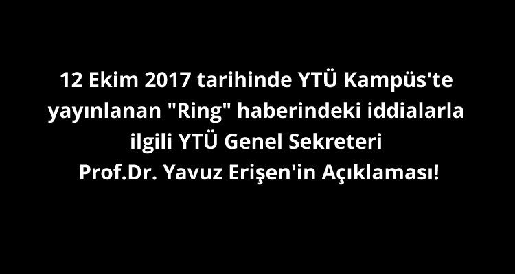YTÜ Genel Sekreteri Prof. Dr. Yavuz Erişen, 12 Ekim 2017 tarihinde YTÜ Kampüs’te yayınlanan “Ring” haberindeki iddialarla ilgili açıklamada bulundu.