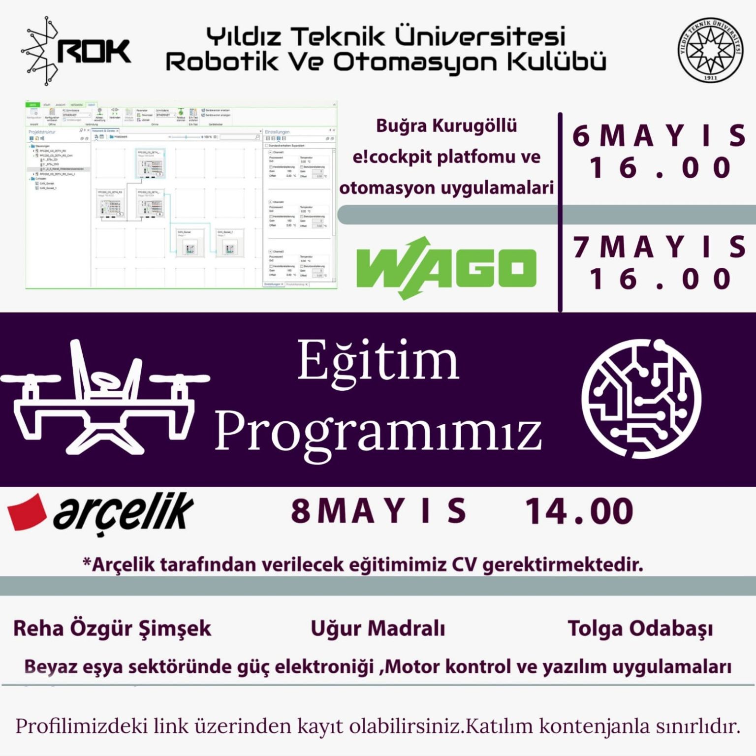 Sizleri yeni bir eğitim serimize davet ediyoruz. 3 Mayıs-9 Mayıs arasında birbirinden farklı konular ve konularında uzman eğitmenlerimizle buluşuyoruz. Eğer sen de insansız hava araçlarına (İHA) ilgi duyuyorsan ilk eğitimimiz tam sana göre! ✨