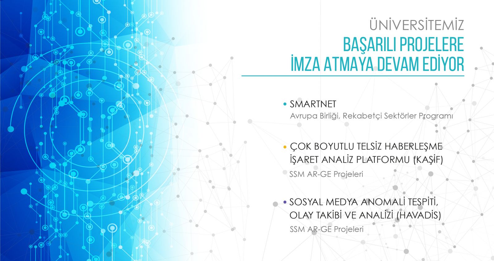 3. Savunma Sanayi Müsteşarlığı, SSM AR-GE Projeleri kapsamında, yürütücülüğünü Prof. Dr. Banu DİRİ’nin yaptığı “Sosyal Medya Anomali Tespiti, Olay Takibi ve Analizi (Havadis)” projesi