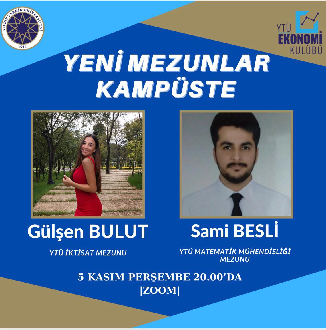 Okulumuzun İktisat bölümünden Gülşen Bulut(finans analisti) ve Matematik Mühendisliği bölümünden Sami Besli’yi(SAP Developer) ağırladığımız yeni etkinliğimizin ilk oturumuna iş hayatına giriş, stajlar, işe alım süreçleri ve iş hayatındaki merak ettiğiniz her konu hakkında konuşacağımız , sorularınızı soracağınız prestijli şirketlerdeki yeni mezunlarımız sizleri bekliyor.
