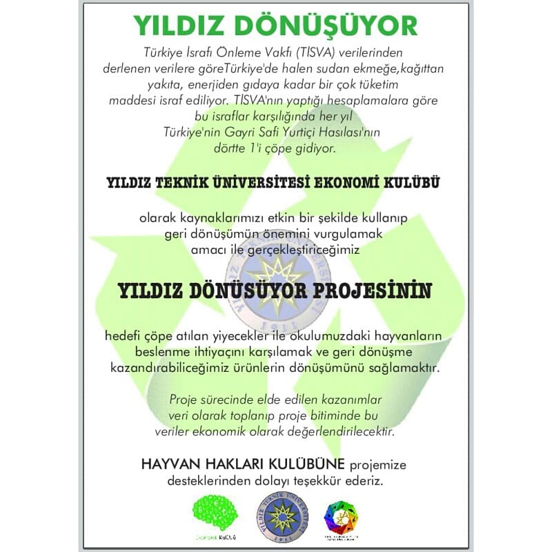 “Yıldız Dönüşüyor” projemizle geri dönüşüme katkıda bulunuyoruz ve kampüsümüzdeki hayvanların beslenmesine yardımcı oluyoruz.