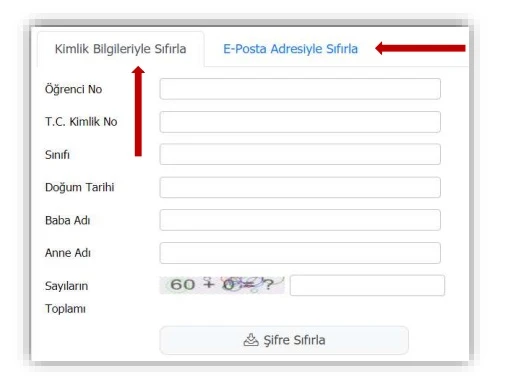 Sistemi’ne giriş yaparak açılan ekran üzerinden “Şifre Sıfırlama” seçeneğini tıklayınız