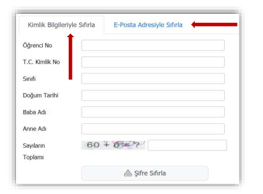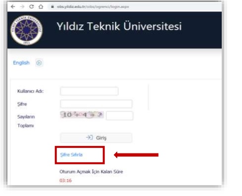 Sistemi’ne giriş yaparak açılan ekran üzerinden “Şifre Sıfırlama” seçeneğini tıklayınız
