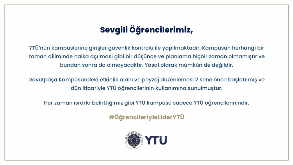 Yıldız Teknik Üniversitesi’nin yeni rektörü Prof. Dr. Tamer Yılmaz yönetimi ilk kez Davutpaşa Millet Bahçesi hakkında yazılı açıklama yaptı.