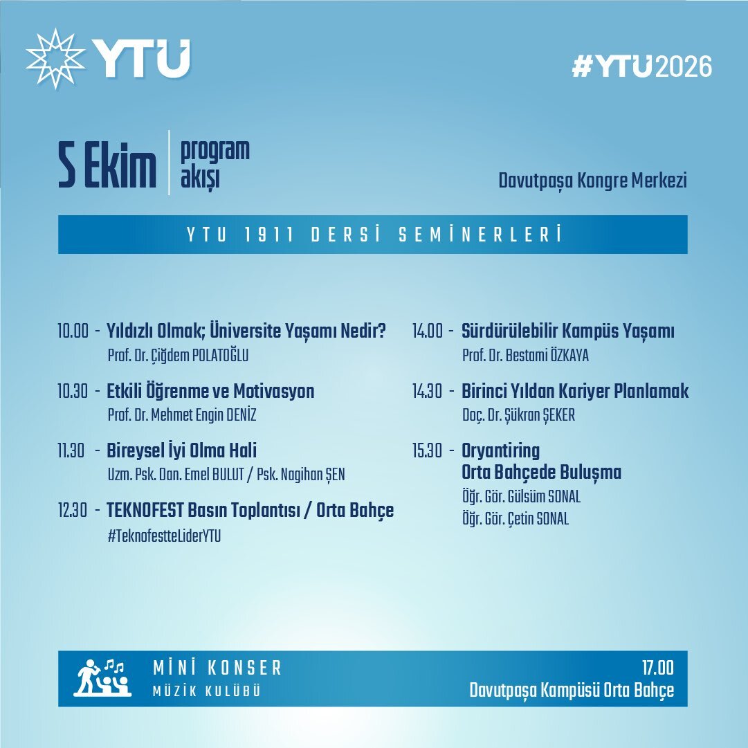 Selam #YTÜ2026 Birinci Yıl Öğrencileri ile buluşacağımız 111. Yıl Oryantasyon Günleri başlıyor!