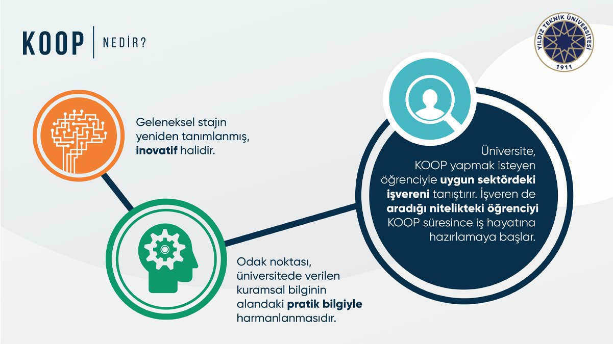 Yıldız Teknik Üniversitesi, çeşitli sosyal medya hesaplarından KOOP Eğitim Modeline geçeceğini duyurdu. Yurtdışında oldukça popüler olan ve ülkemizde çok az sayıda okulda görülen bu eğitim modelinin öncelikli amacı teorik eğitim ile iş dünyasını birleştirmek üzerine kuruludur.