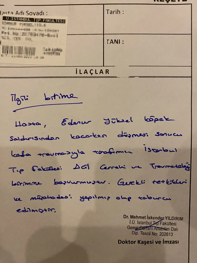 Hastaneye giden ve kafa travması geçirdiği tespit edilen genç kız, tedavisinin ardından taburcu edildi. Genç öğrenci doktor raporunu da sosyal medya hesabından paylaştı.