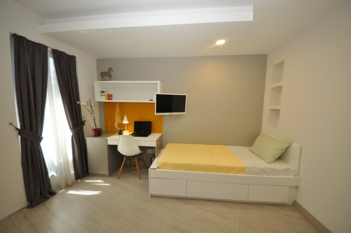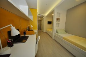 Tek kişilik, iki kişilik ve üç kişilik odalarda çalışma masası, ortopedik yatak, gardrop, TV-Uydu, mini mutfak, mini buzdolabı, klima, telefon, internet, çelik kasa ve Banyo+WC bulunmaktadır. Beyoğlu Kampüsaray Kız Öğrenci Yurdu‘nda kütüphane, etüt odası, dinlenme odası, spor odası, cep sineması, hamam, sauna, hobi mutfağı, çamaşır-ütü odası, revir, kafe ve kahvaltı salonu bulunmaktadır.