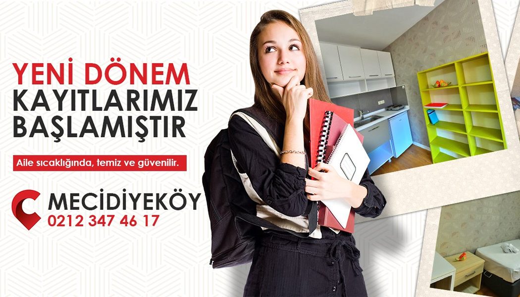 Campucity MecidiyeKız Öğrenci Yurdu, merkezi konumu, sunduğu konfor ve hizmetlerle tercihiniz olacaktır. Tek kişilikten altı kişiliğe kadar oda seçenekleri, modern tefriş edilmiş odalar, 24 saat kesintisiz sıcak su, güçlü internet hizmeti,etüt salonları yanısıra sayamadığımız onlarca hizmet ve mükemmel Terasıyla evinizdeki konfor ve huzuru yaşayacağınız bir mekan.Mecidiyeköy Çarşı içindeki mükemmel konumuyla restoran ve kafeler ayağınızın altında. Mecidiyeköy Metro, Metrobüs, yürüme mesafesinde.Campucity Mecidiyeköy Özel Kız Öğrenci Yurdumuz bulunduğu konum ve sağladığı ulaşım imkanları ile İstanbuldaki birçok üniversite öğrencimize hizmet vermektedir.
