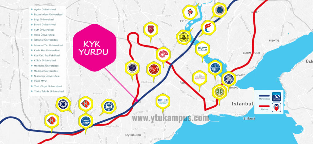 Limitsiz internet, çamaşırhane, etüt odası, 24 saat sıcak su bulunmaktadır. Bu yurt YTÜ Davutpaşa Kampüsü’ne yaklaşık 15 dakika uzaklıktadır. M1A Havalimanı metro durağının çok yakınındadır. Üniversiteye tek istasyon uzaklıktadır.